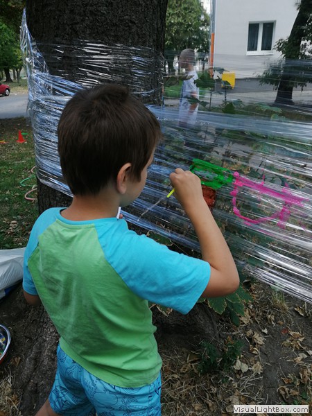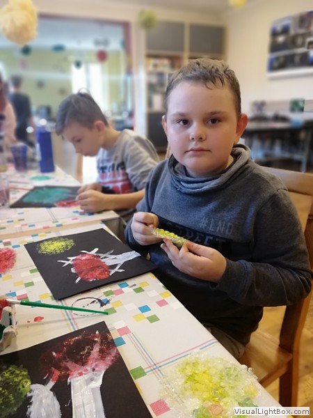 Jest to bardzo prosta technika zdobienia, dostępna dla każdego. W warsztatach dla dzieci proponujemy formy najprostsze, zazwyczaj płaskie, robione na deseczkach, płytach CD.
