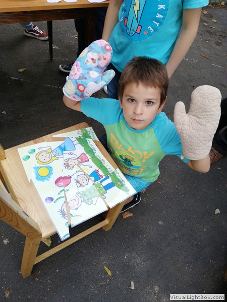 Uczestnicy otrzymują szablony postaci z tektury, następnie projektują dla nich ubiór. Wycinają z materiałów kreacje, przyklejają je do szablonu i stylizują .