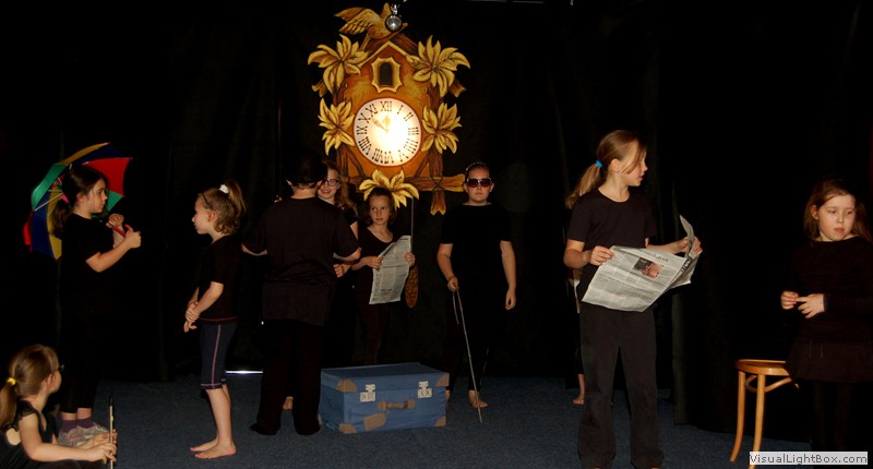 Spektakl został wzbogacony krótkim filmikiem, w którym dzieci opowiadają o swoich przemyśleniach na temat bohaterów sztuki oraz ciągle brakującego czasu w ich życiu.
